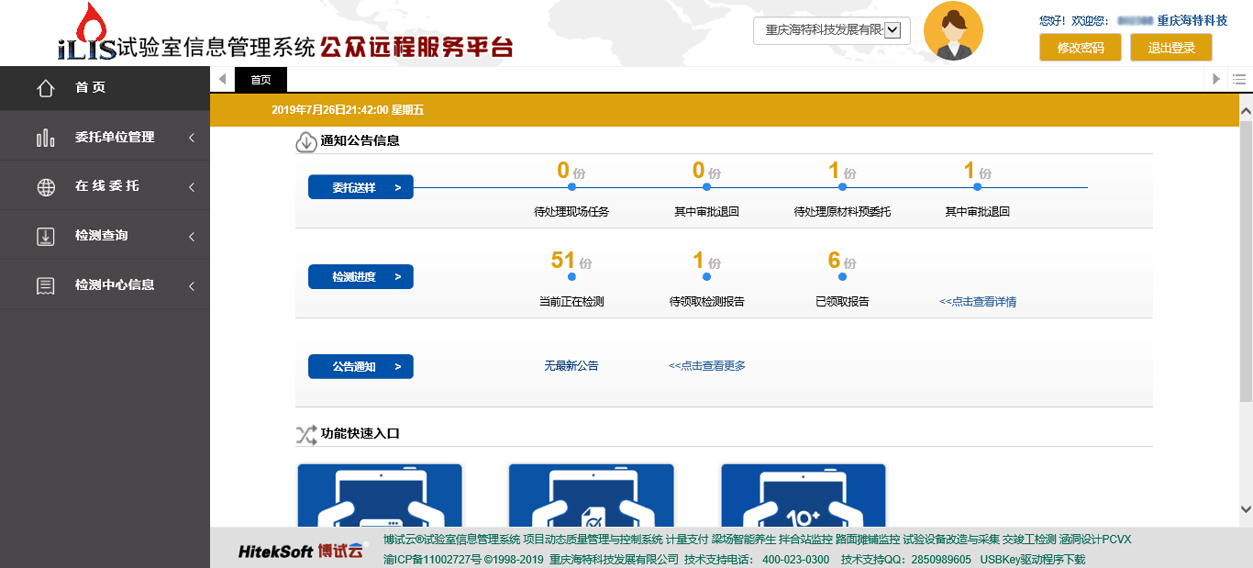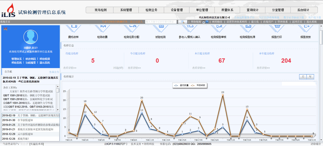 系統(tǒng)功能全面,核心功能包括試驗檢測業(yè)務(wù)管理、管理體系執(zhí)行與跟蹤、工地以及駐外試驗室管理等,提供了試驗室檢測業(yè)務(wù)的全方位控制與管理,對試驗檢測業(yè)務(wù)管理