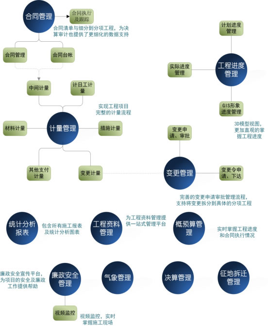海特高等級公路多項目建設(shè)項目管理大數(shù)據(jù)云平臺是海特科技在交通工程建設(shè)信息化領(lǐng)域建設(shè)多年的開發(fā)成果,它沉淀了海特作為交通工程建設(shè)信息化供應(yīng)商多年來所積累的豐富經(jīng)驗,該平臺主要為項目業(yè)主及各層參與單位投資、建設(shè)、運營、養(yǎng)護多個工程項目的復(fù)雜管理過程而定制,旨在建立一個現(xiàn)代化、務(wù)實、高效的信息化管理平臺,確保高質(zhì)量、低成本的完成項目業(yè)主及各層參與單位的管理工作。該平臺包括項投資管理、質(zhì)量管理、安全管理、文檔管理、進(jìn)度管理、辦公自動化六大功能模塊,并提供了基于BIM的綜合分析決策支持應(yīng)用模塊,能完成項目業(yè)主及各層參與單位對一個或多個公路工程項目項目建設(shè)全過程的管理,尤其對項目整個過程費用、質(zhì)量、進(jìn)度等數(shù)據(jù)統(tǒng)計和分析。從而達(dá)到項目業(yè)主及各層參與單位對各項目投資、建設(shè)、運營的有效管理和控制的目標(biāo)。